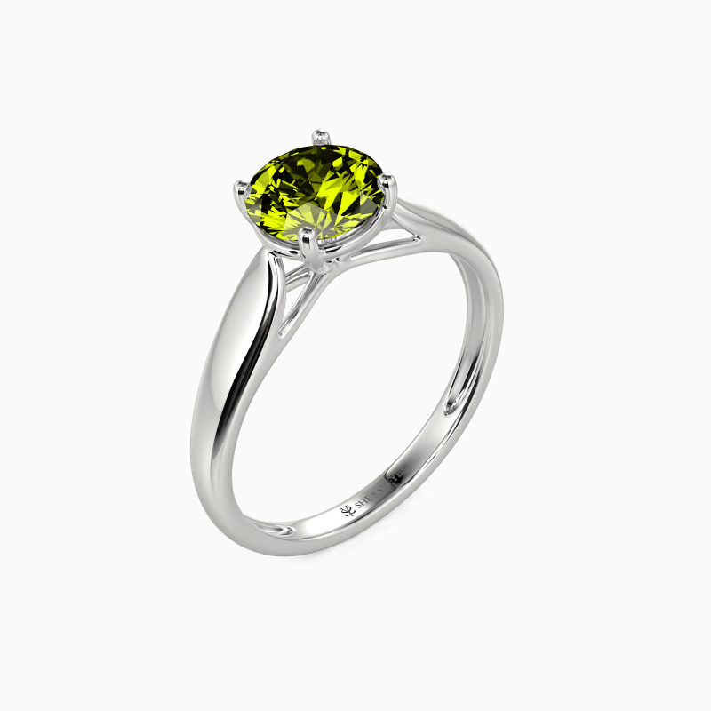 As scripture as it gets. This engagement ring features a Round cut Stone set high above the simple band. The look is very traditional, with clean lines and nothing to distract from the beauty.