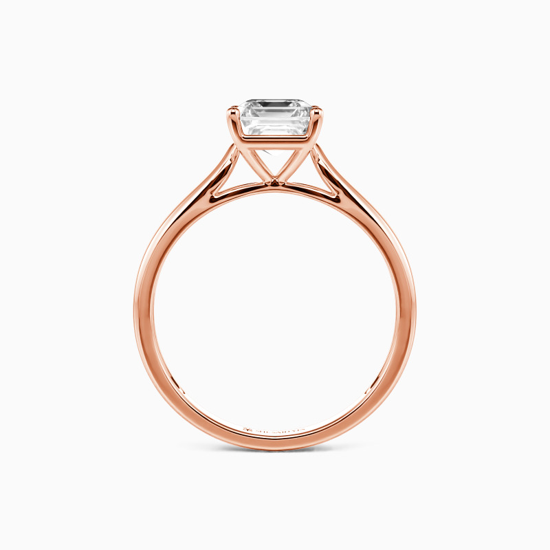 As scripture as it gets. This engagement ring features an Asscher cut stone set high above the simple band. The look is very traditional, with clean lines and nothing to distract from the beauty.