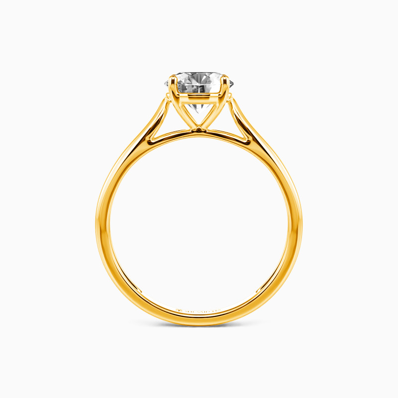 As scripture as it gets. This engagement ring features a Round cut Stone set high above the simple band. The look is very traditional, with clean lines and nothing to distract from the beauty.