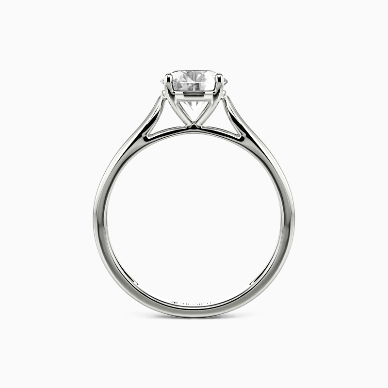 As scripture as it gets. This engagement ring features a Round cut Stone set high above the simple band. The look is very traditional, with clean lines and nothing to distract from the beauty.