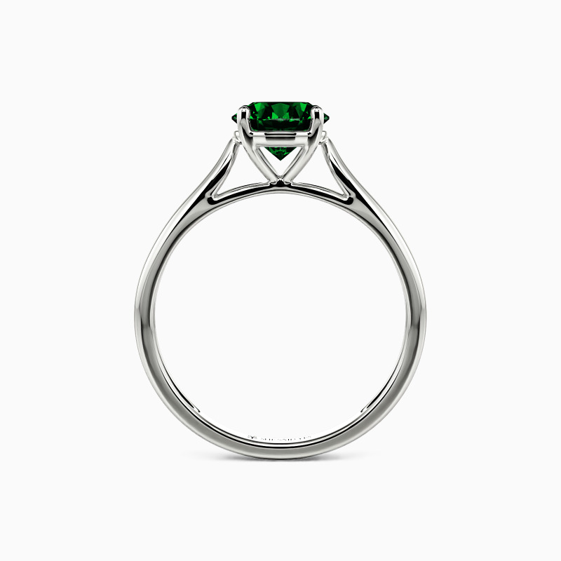 As scripture as it gets. This engagement ring features a Round cut Stone set high above the simple band. The look is very traditional, with clean lines and nothing to distract from the beauty.