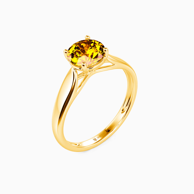 As scripture as it gets. This engagement ring features a Round cut Stone set high above the simple band. The look is very traditional, with clean lines and nothing to distract from the beauty.