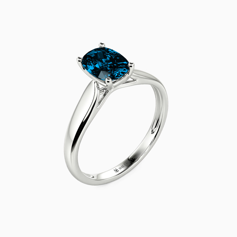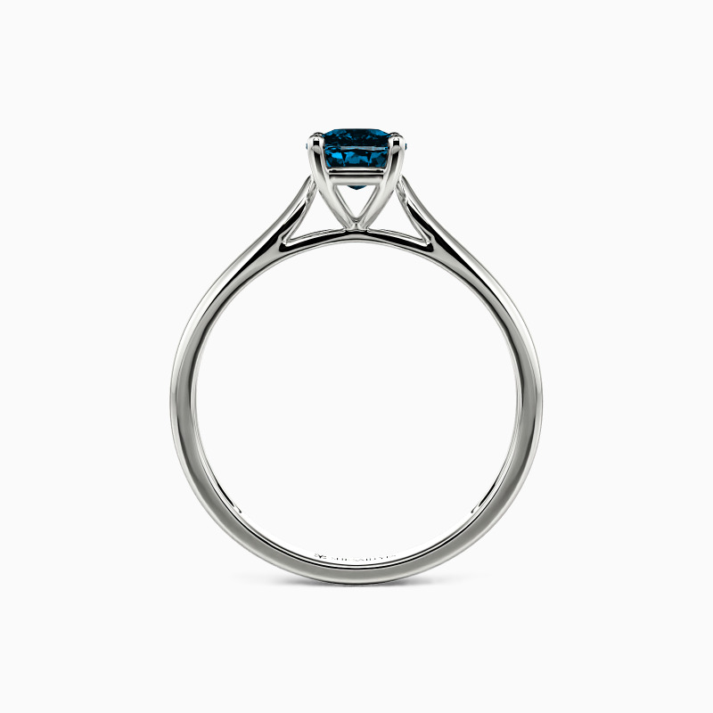 As scripture as it gets. This engagement ring features a Elongated Cushion cut Stone set high above the simple band. The look is very traditional, with clean lines and nothing to distract from the beauty.
