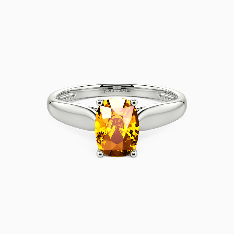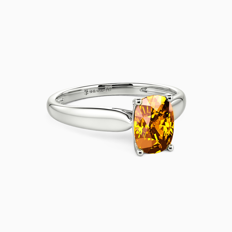 As scripture as it gets. This engagement ring features a Elongated Cushion cut Stone set high above the simple band. The look is very traditional, with clean lines and nothing to distract from the beauty.