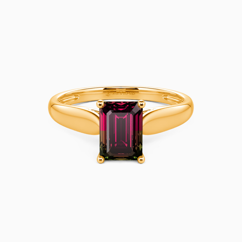 As scripture as it gets. This engagement ring features an Emerald cut Stone set high above the simple band. The look is very traditional, with clean lines and nothing to distract from the beauty.