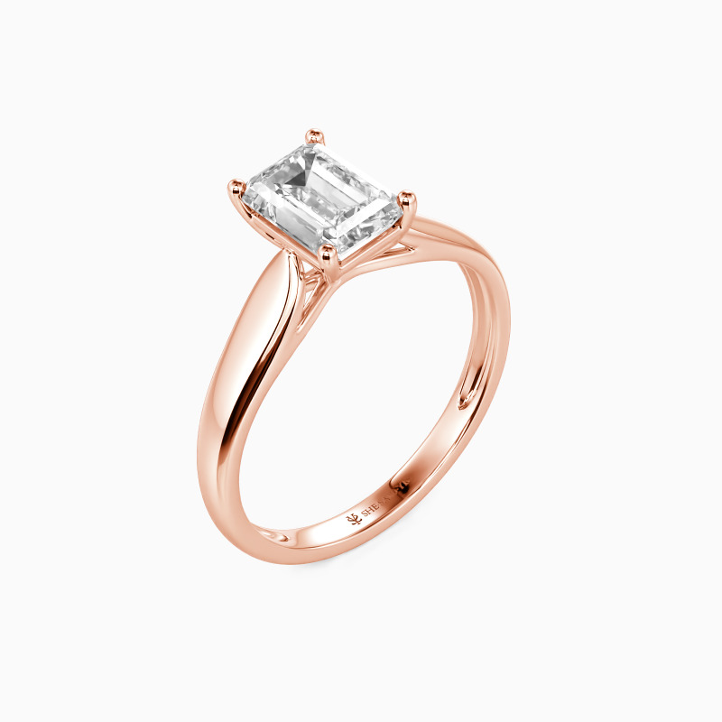As scripture as it gets. This engagement ring features an Emerald cut Stone set high above the simple band. The look is very traditional, with clean lines and nothing to distract from the beauty.