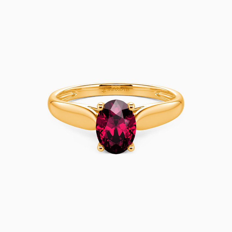 As scripture as it gets. This engagement ring features a Oval cut Stone set high above the simple band. The look is very traditional, with clean lines and nothing to distract from the beauty.