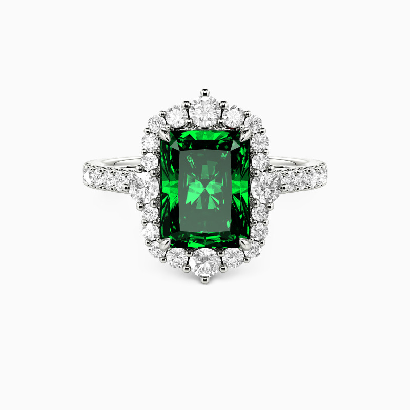Captivate her heart with this stunning halo engagement ring. The radiant-cut center stone commands attention, surrounded by a glittering halo that amplifies its brilliance. The cathedral design adds elegance and height, while the paved shank ensures sparkle from every angle. A true masterpiece that embodies timeless romance and sophistication.