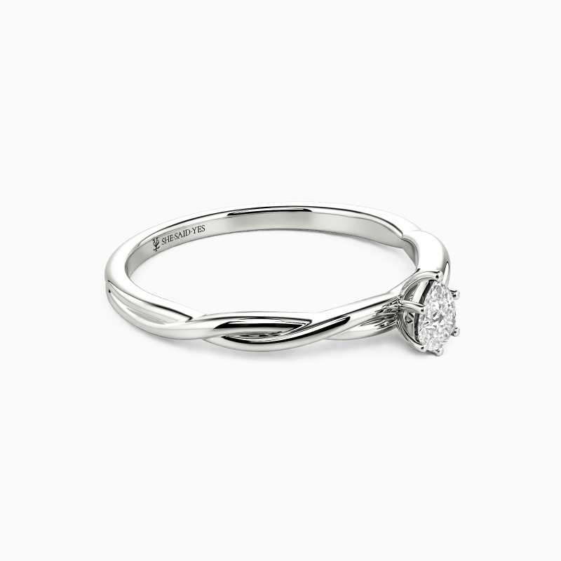 Top off any look with this breathtaking engagement ring. Crafted in precious metal, this unique solitaire ring features a pear-shaped stone in the middle and a delicately twisted shank, which shows simple elegance. Surprised her with this charming piece!