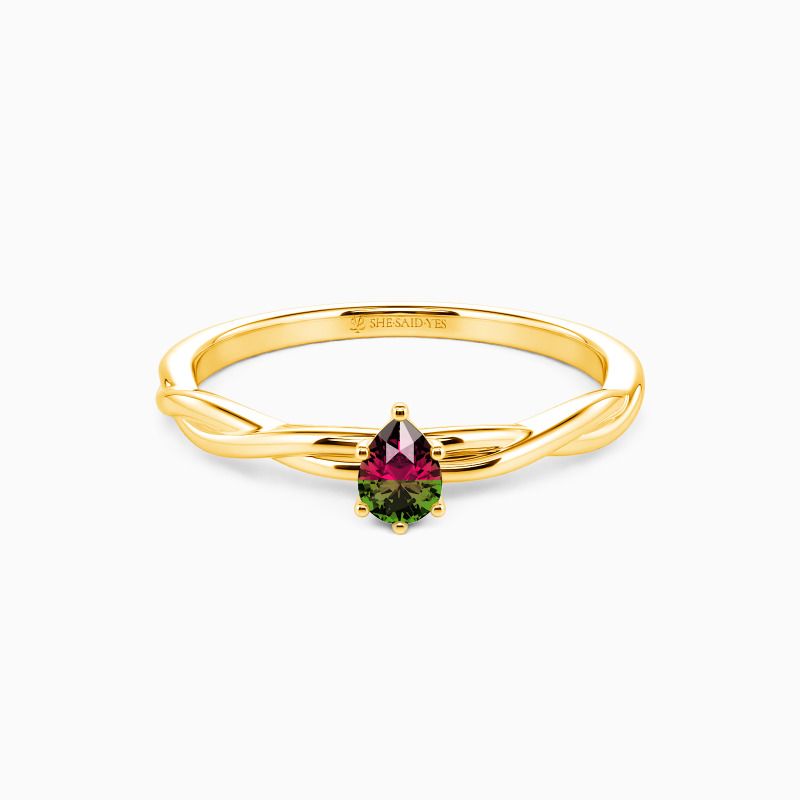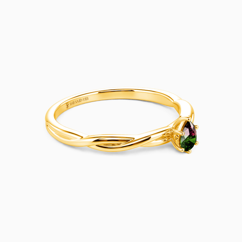 Top off any look with this breathtaking engagement ring. Crafted in precious metal, this unique solitaire ring features a pear-shaped stone in the middle and a delicately twisted shank, which shows simple elegance. Surprised her with this charming piece!