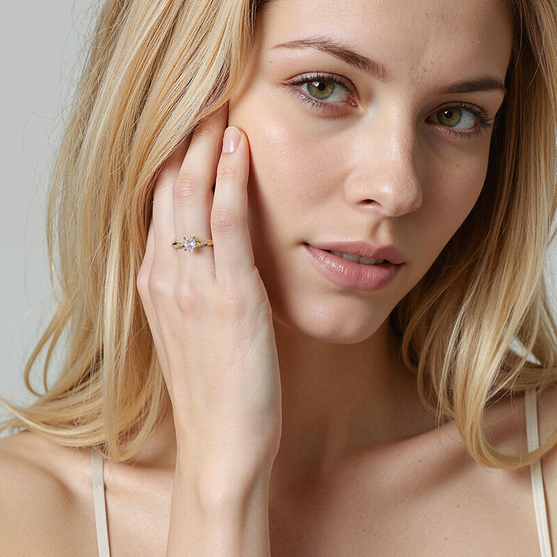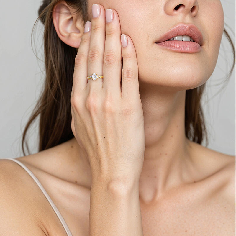 "Come Around Me" 0.5ct Oval Cut Side Stone Engagement Ring