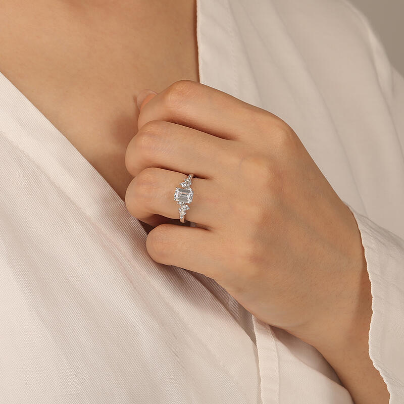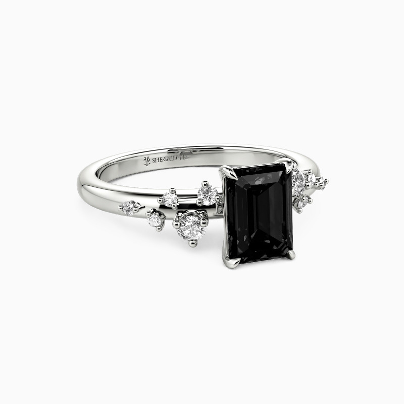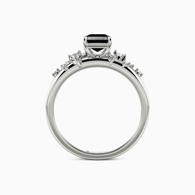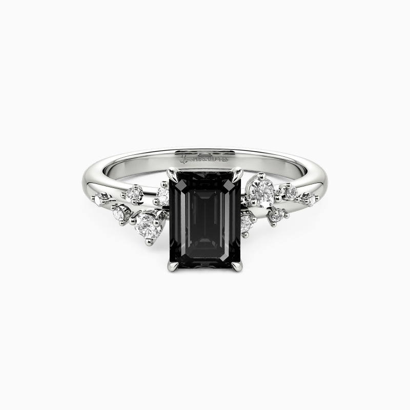 "Dearest Romance" Emerald Cut Cluster Side Stone Engagement Ring