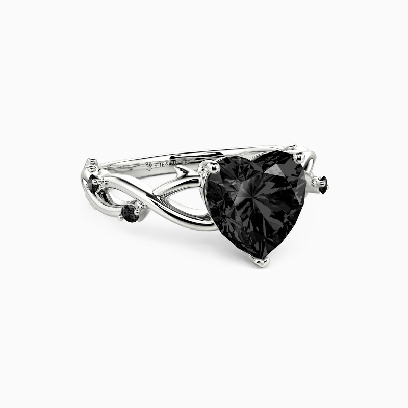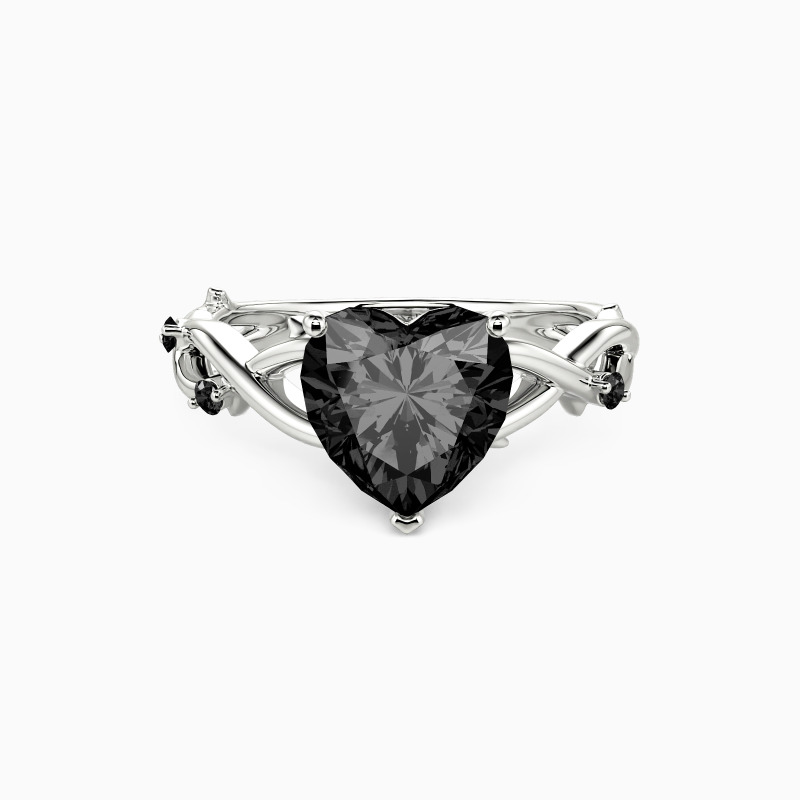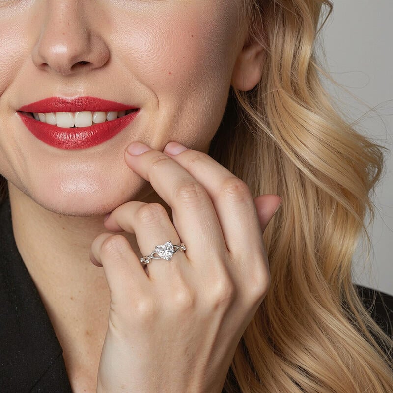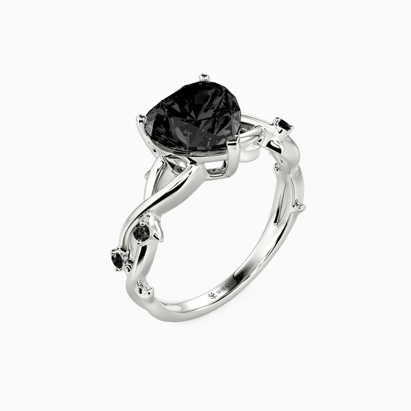 Elevate your proposal with this stunning engagement ring. It features a heart-cut center stone expertly crafted to catch sparkle from every angle. The vine-like intertwining shank adds a touch of whimsy and romance, while three delicate gems adorn the band, perfectly complementing the design. With remarkable craftsmanship, this ring is a true masterpiece that will take your partner's breath away. Perfect for any romantic proposal, it's a symbol of your love that will last a lifetime.