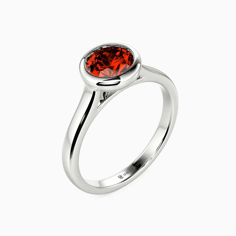 Renowned for its modern minimalism, this fantastic engagement ring is one of the greatest treasures of SHE·SAID·YES. Featuring a highly polished appearance, it owns a brilliant round gemstone in a precious bezel of the center that pairs well with almost any attire.