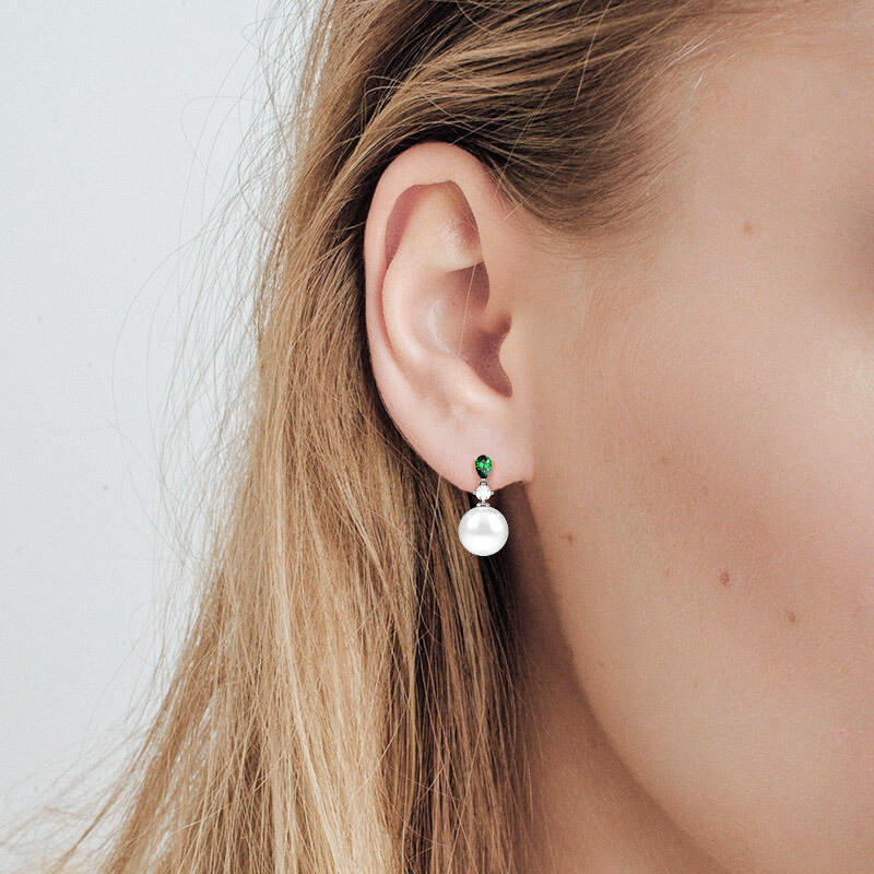 A stunning showcase of elegance and refinement, these drop earrings delight at first glimpse. Each earring features a lustrous pearl suspended with soft grace beneath a pear and round gemstone. The elegant design sways gently with your movements, gleaming subtly to draw admiring eyes. Whether worn for day or evening, the understated luxury of these drops enhances any outfit with impeccable taste and sophistication.
