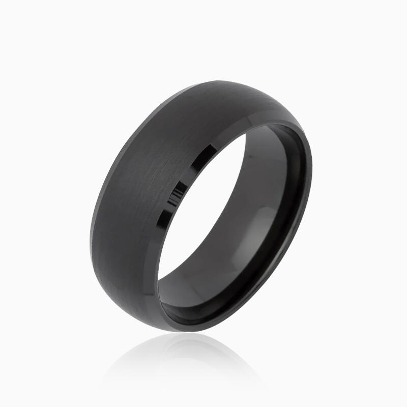 This men's wedding band exudes classic elegance with a modern twist. The ring features a graceful dome profile, creating a smooth, comfortable curve that sits naturally on the finger. A refined satin finish blankets the surface, imparting a soft, understated luster that catches the light subtly. Precision-cut beveled edges frame the dome, adding a contemporary touch and enhancing the ring's sophisticated silhouette.