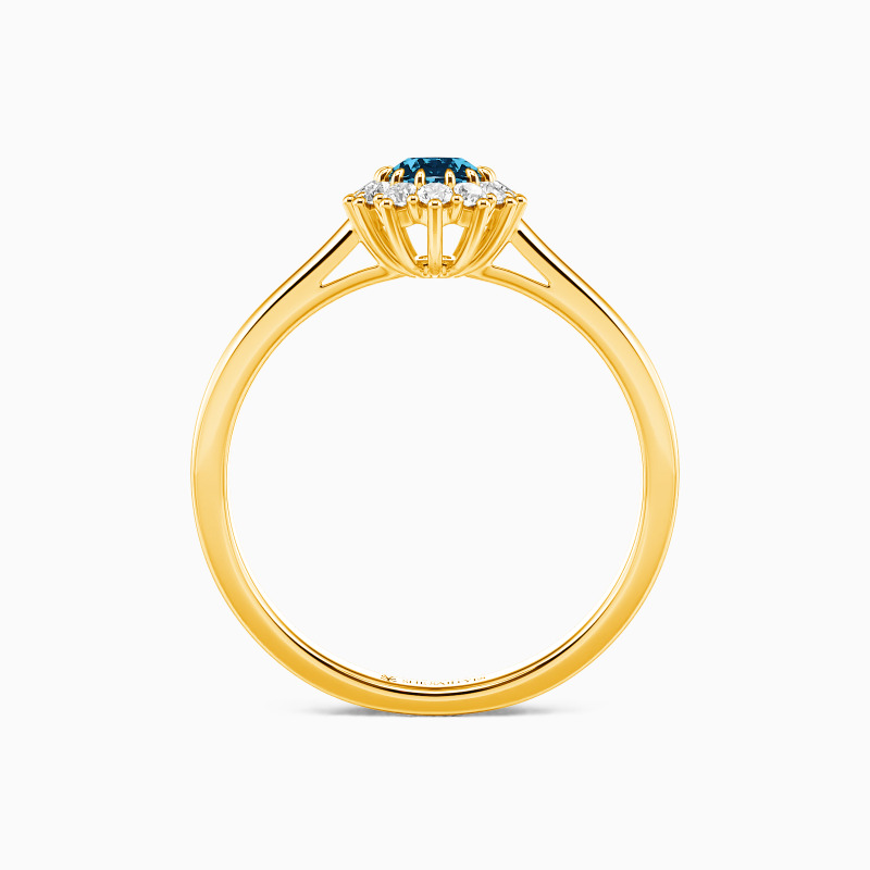 Fashioned from classic glamour, this halo engagement ring features a striking oval-cut center stone surrounded by a halo of round-cut gems. The center stone looks even more brilliant against the halo. Besides, the chrysanthemum basket adds a bit of elegance and sophistication to the whole ring.