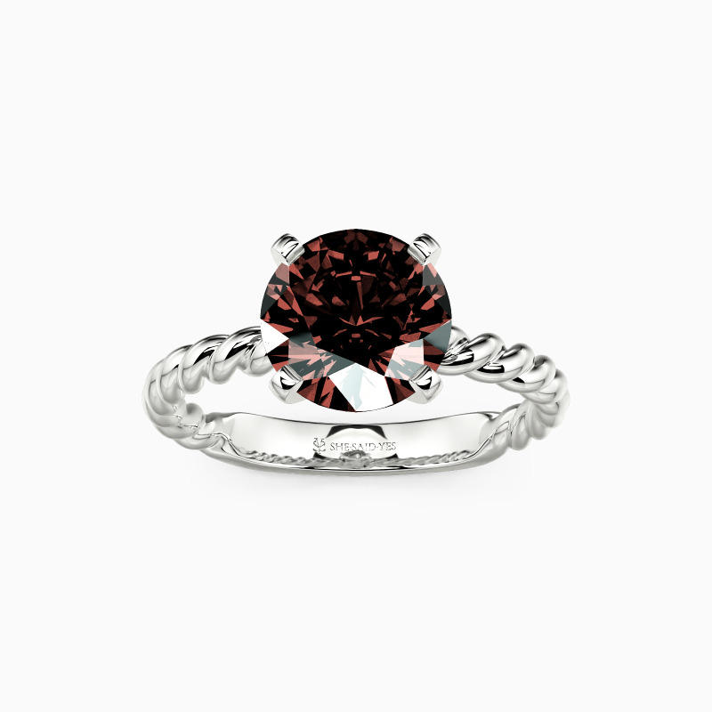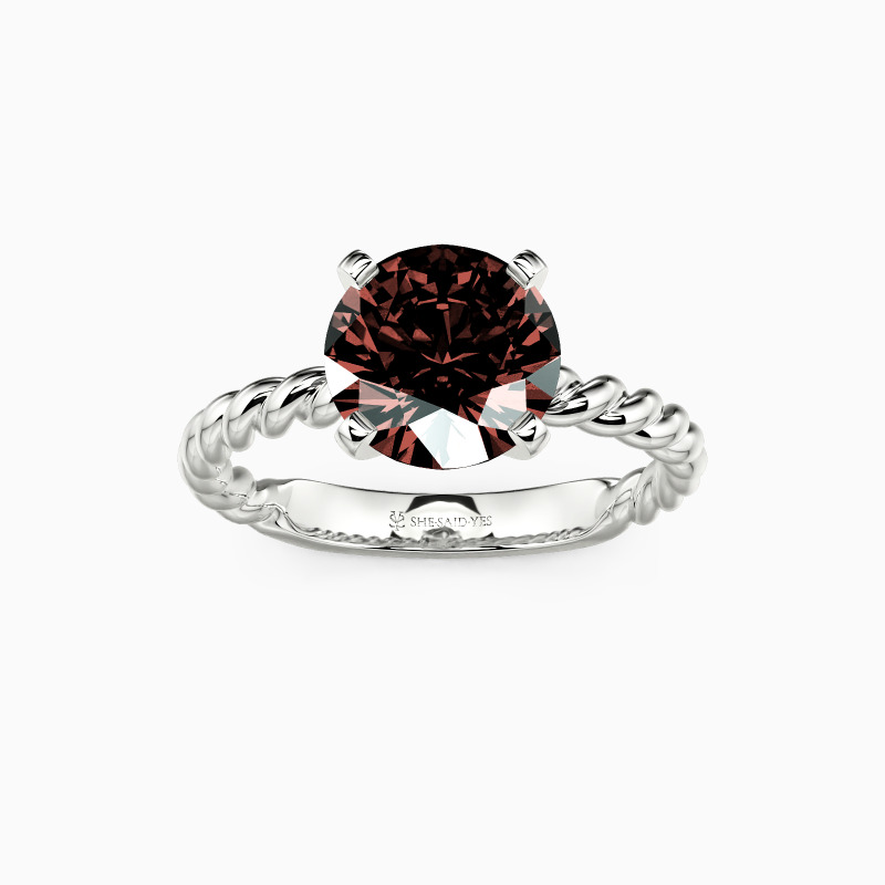 Well-crafted in the twisted design, this excellent engagement ring features a scintillating round center stone on the graceful cord shank. With the polished surface and plat edges at all points, this delicate ring will lead you to taste trendy jewelry fashion anytime.