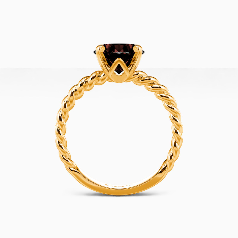 Well-crafted in the twisted design, this excellent engagement ring features a scintillating round center stone on the graceful cord shank. With the polished surface and plat edges at all points, this delicate ring will lead you to taste trendy jewelry fashion anytime.