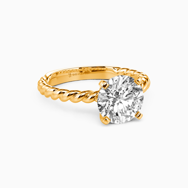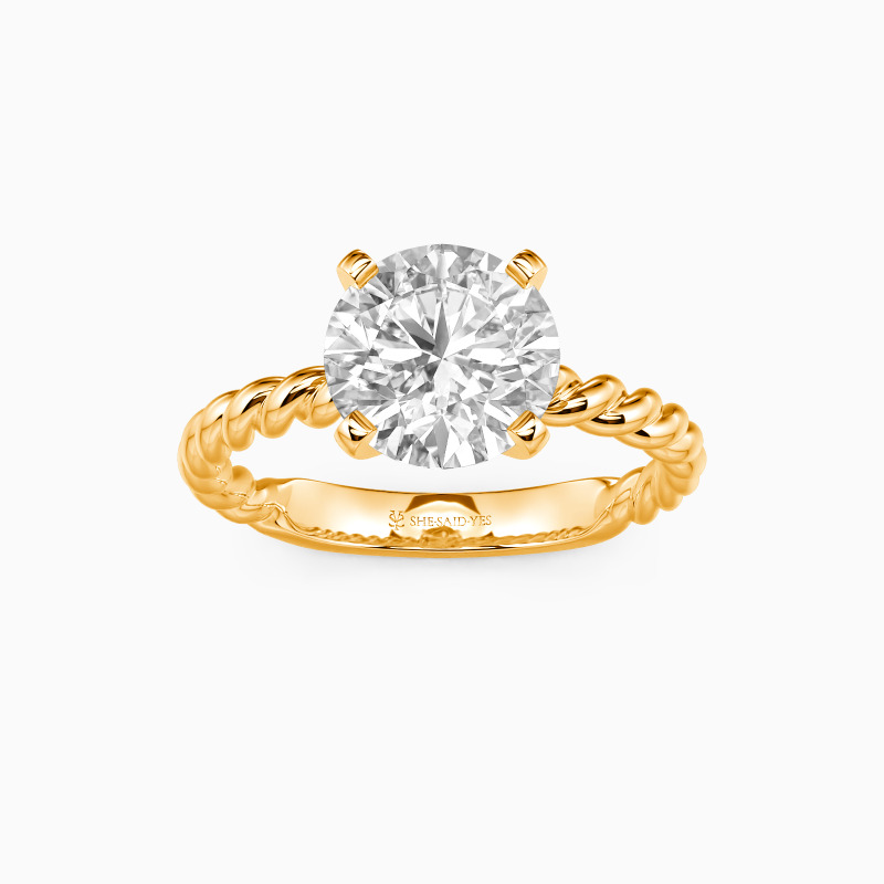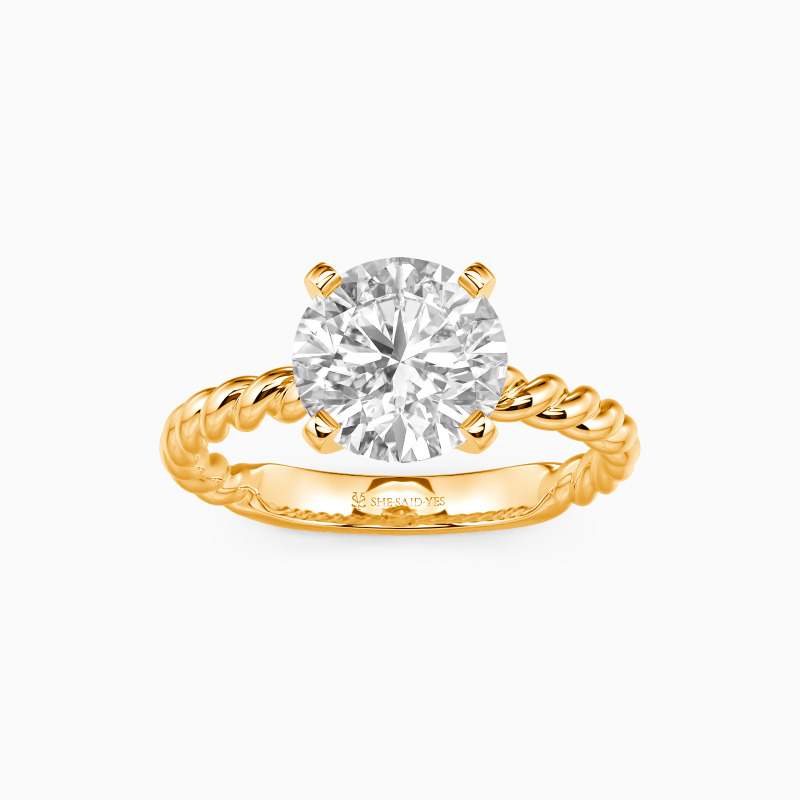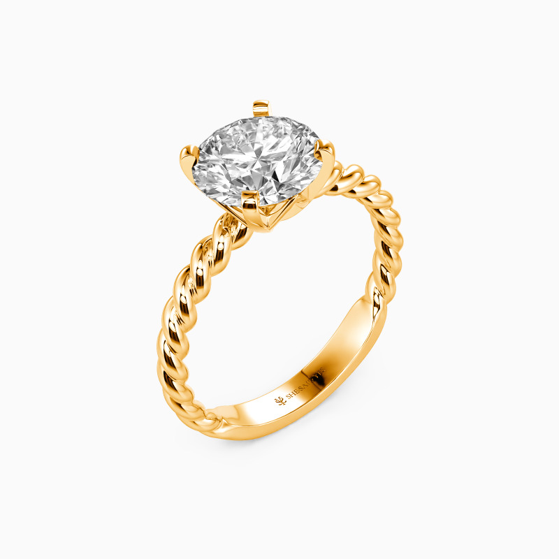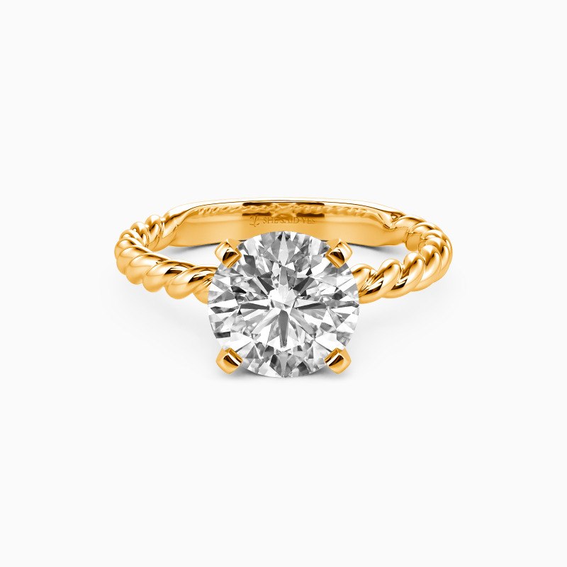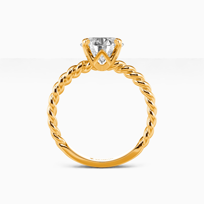 Well-crafted in the twisted design, this excellent engagement ring features a scintillating round center stone on the graceful cord shank. With the polished surface and plat edges at all points, this delicate ring will lead you to taste trendy jewelry fashion anytime.