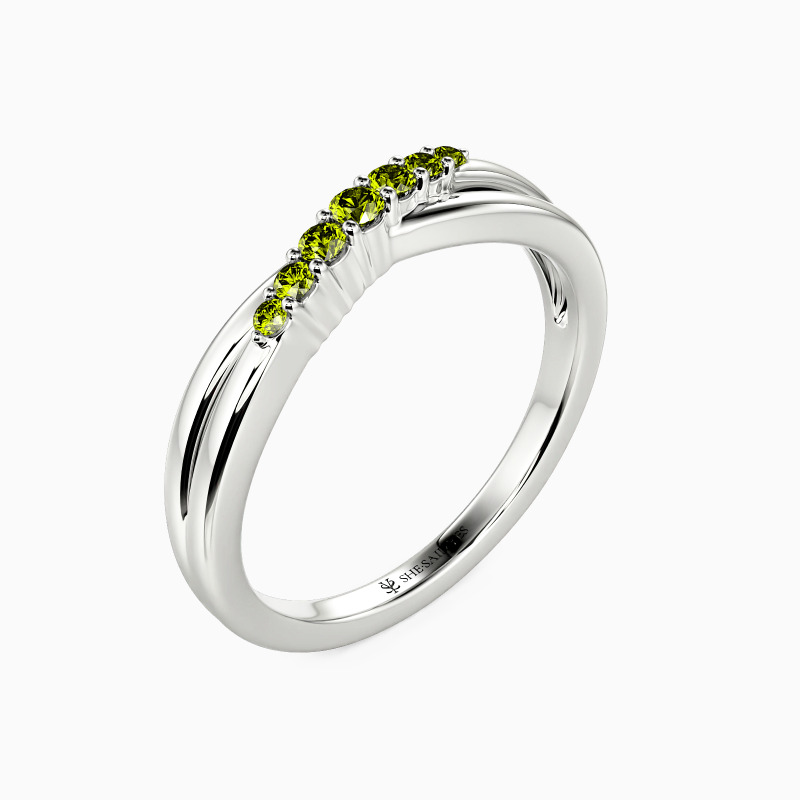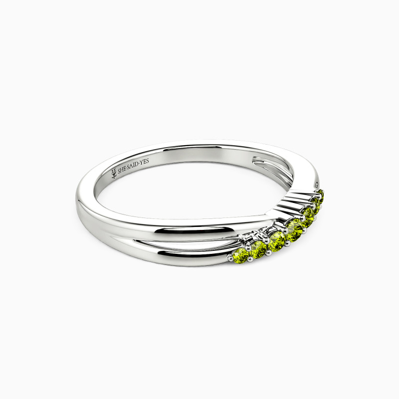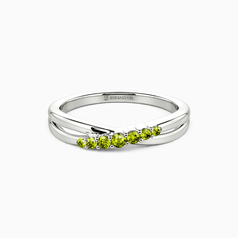 This exquisite wedding band intertwines romance and sophistication with its graceful crossover design. One delicate row shimmers with round gems, adding a touch of brilliance to its flowing silhouette. Crafted for the modern bride, it symbolizes eternal love through its elegant curves and timeless sparkle—perfect for both everyday wear and cherished moments.