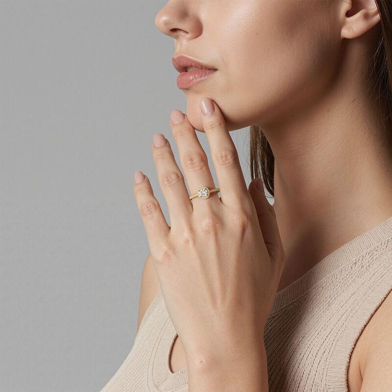 "Fall into Love" 0.5ct Round Cut Halo Engagement Ring