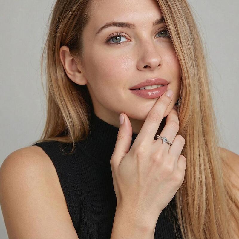 "Falling Slowly" 0.5ct Pear Cut Side Stone Engagement Ring