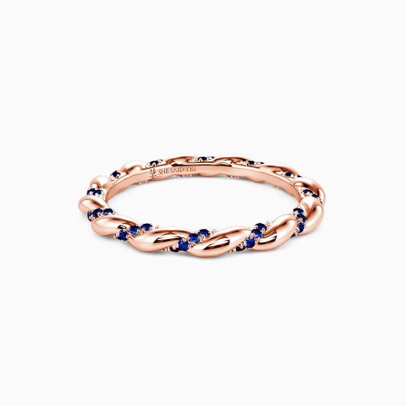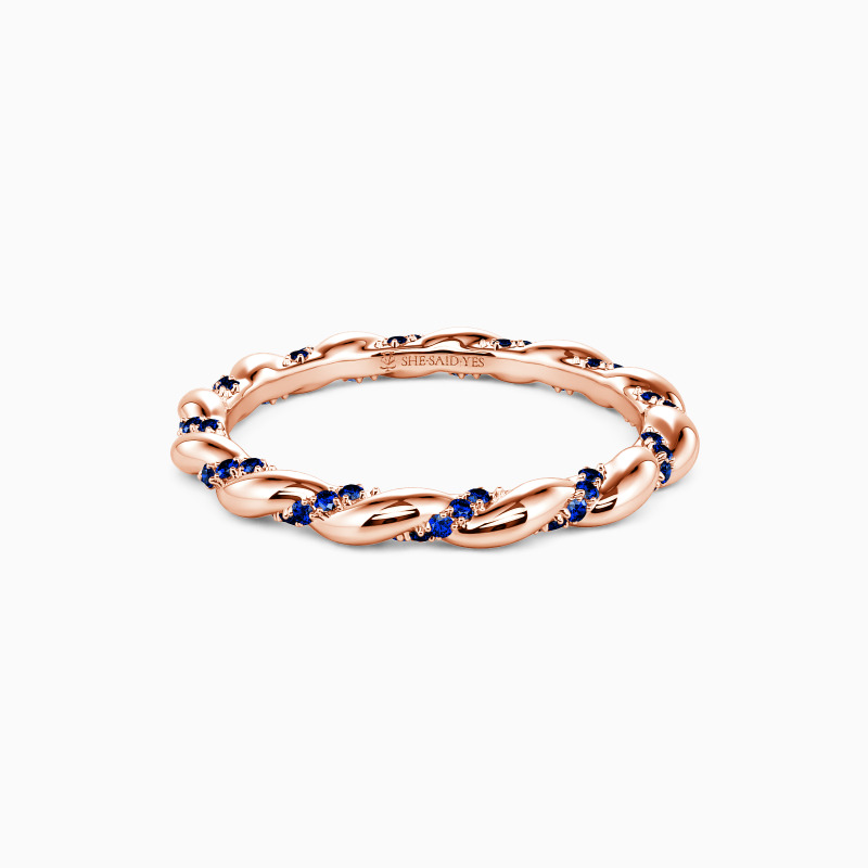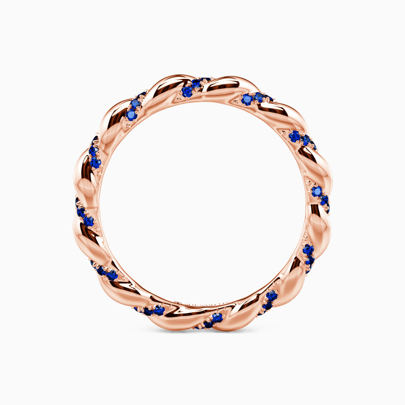 This wedding band glimmers as a standout piece. It radiates sophistication, formed by the syncing of two elegant ribbons, one polished metal and one glittering with gems. When worn individually or alongside a partner, its intricate design ensures all eyes will be drawn to its finely crafted details and balanced, intertwining composition.