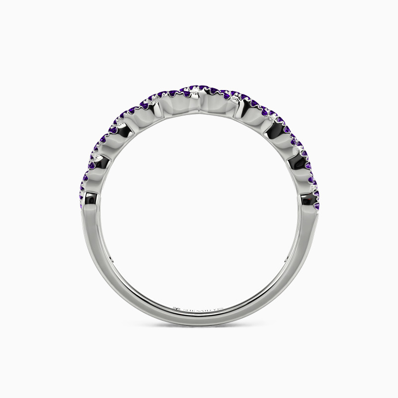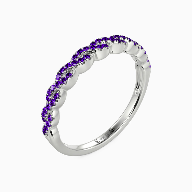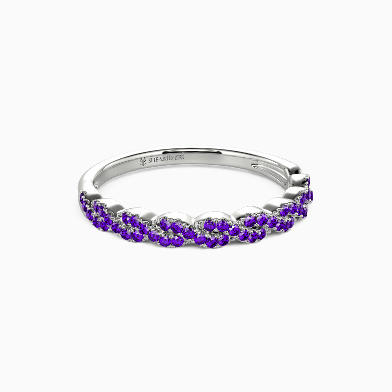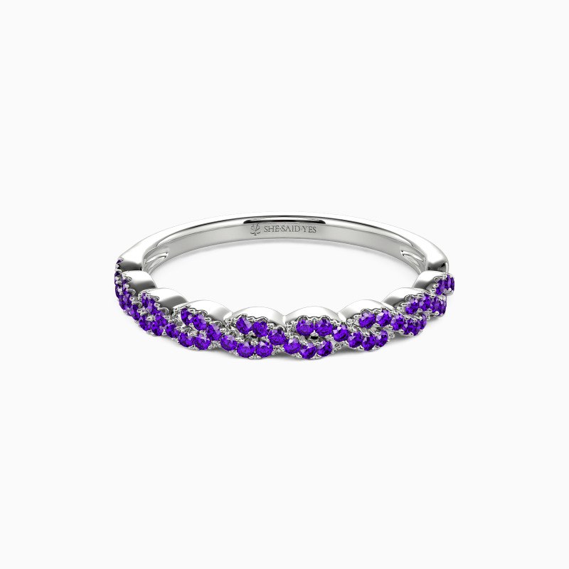 This wedding ring represents the unbreakable bond between two hearts in love. The intertwined shank design is beautifully crafted to display your commitment to each other. Two rows of elegantly paved gemstones create an unbroken circle of beauty and add sparkle to the whole piece. The meticulous craftsmanship and exceptional attention to detail ensure this wedding ring will remain an enduring symbol of your love for many years to come.