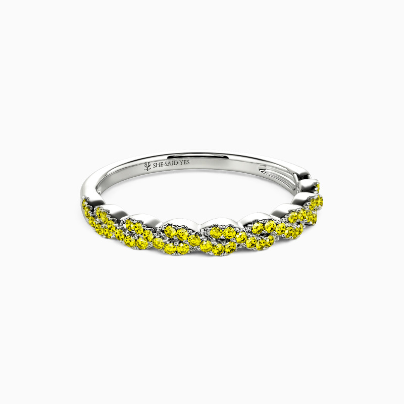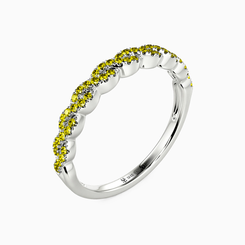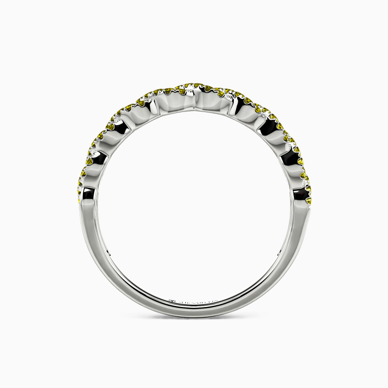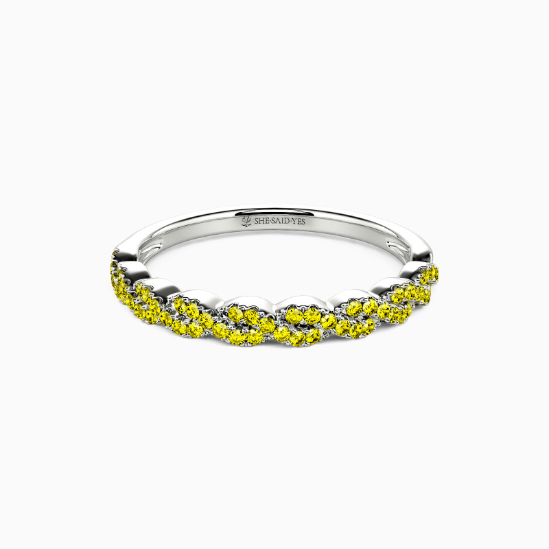 This wedding ring represents the unbreakable bond between two hearts in love. The intertwined shank design is beautifully crafted to display your commitment to each other. Two rows of elegantly paved gemstones create an unbroken circle of beauty and add sparkle to the whole piece. The meticulous craftsmanship and exceptional attention to detail ensure this wedding ring will remain an enduring symbol of your love for many years to come.