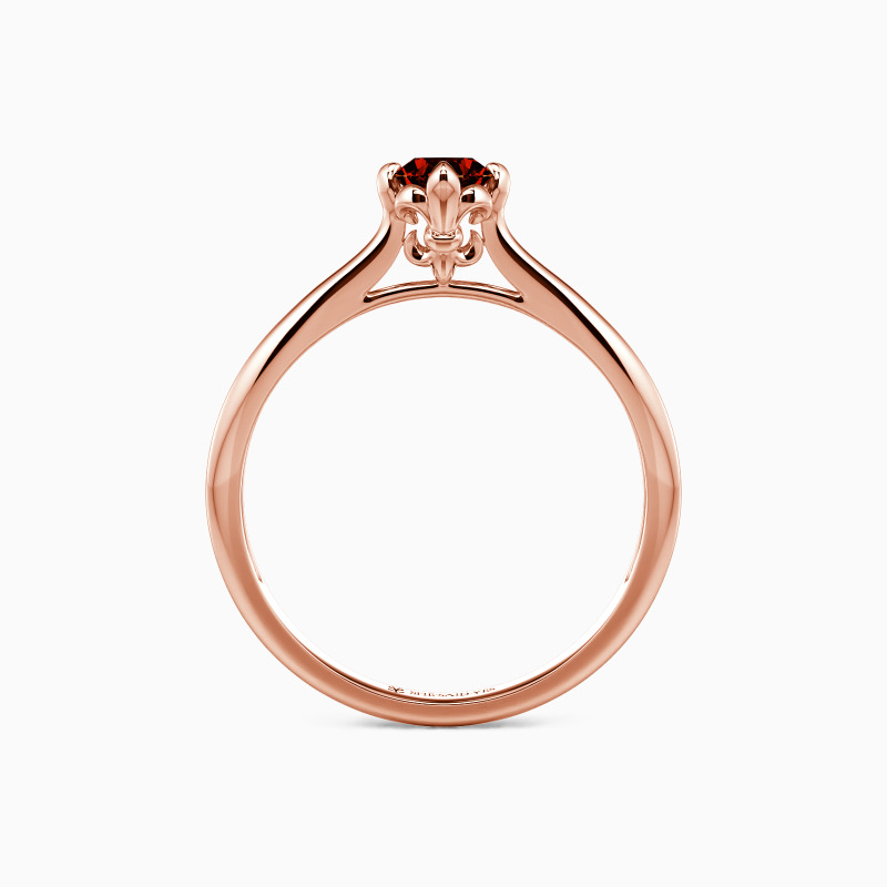 Classical and graceful. Held by the elegant setting of the fleur-de-lis, the round-cut center gem shimmers its own brilliance on the polished tapered shank. With the different widths of the shank, this solitaire ring with timeless glisten will stretch your finger and create an unforgettable memory for everyone in love.