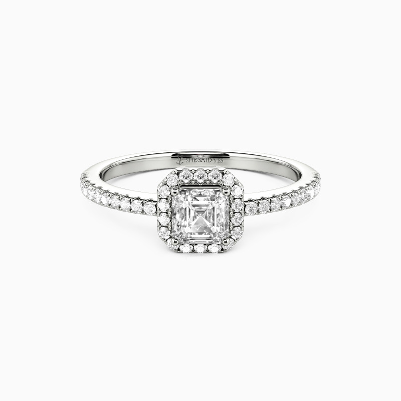 "Forever My Treasure" 0.35ct Asscher Cut Halo Engagement Ring