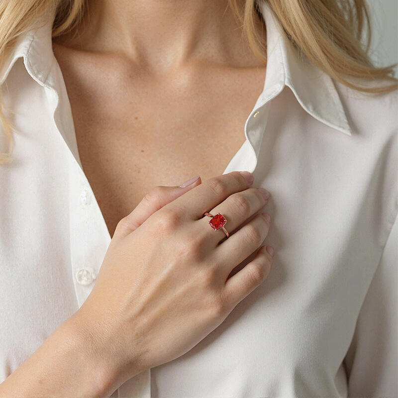 Captivating brilliance meets contemporary design in this exquisite engagement ring. The striking centerpiece, an elongated-cushion-shaped stone, commands attention with its unique cut. Four sleek prongs secure the gem atop a lustrous band, while delicate accent stones adorn the setting's profile, adding a subtle sparkle. This ring artfully balances timeless elegance with modern flair, creating a sophisticated symbol of enduring love and commitment.