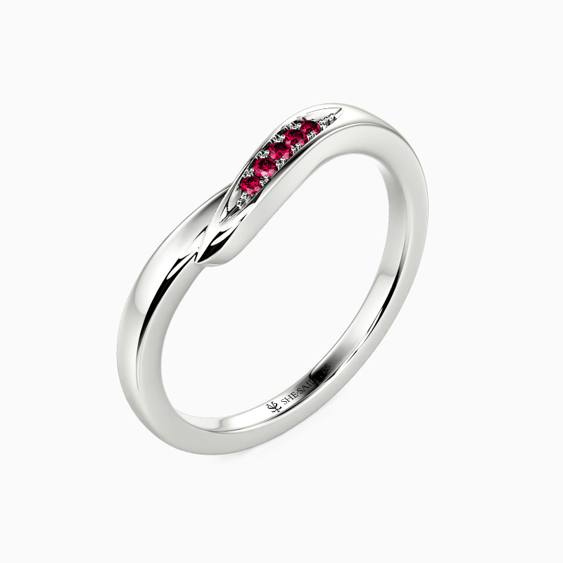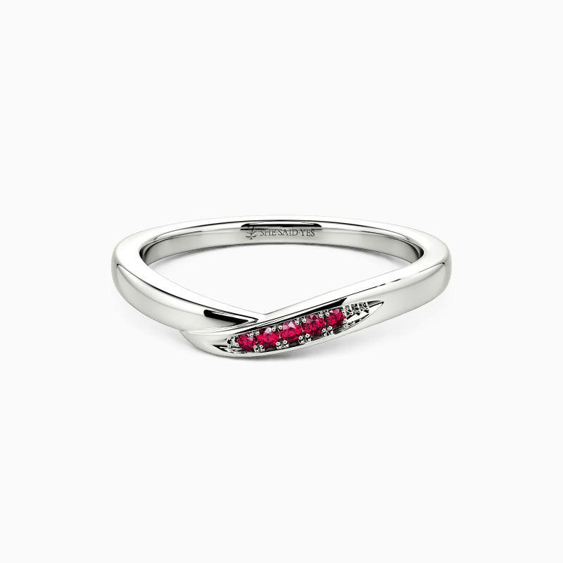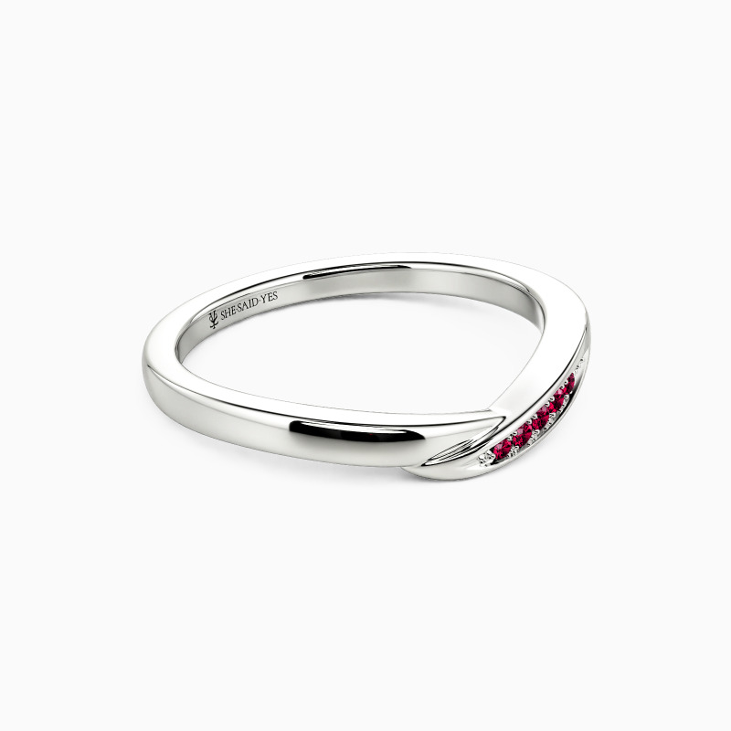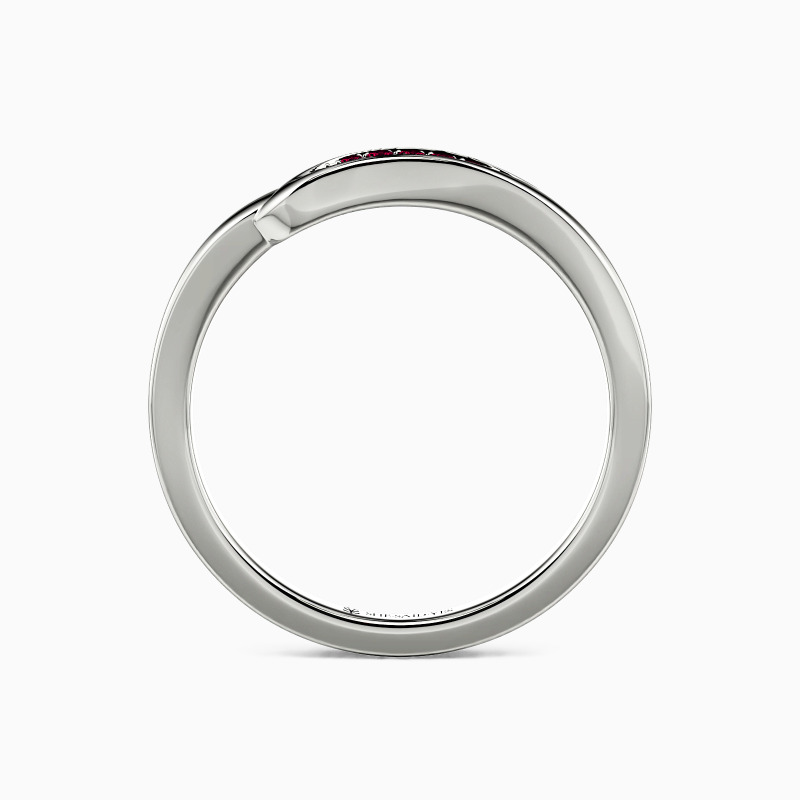 This wedding band flows like a silent vow around the finger, its sculpted curves cradling a row of glimmering gems. The design balances delicate grace with quiet strength—soft undulations catch the light, while the seamless setting creates a river of brilliance. A tribute to devotion, where every curve whispers eternity.