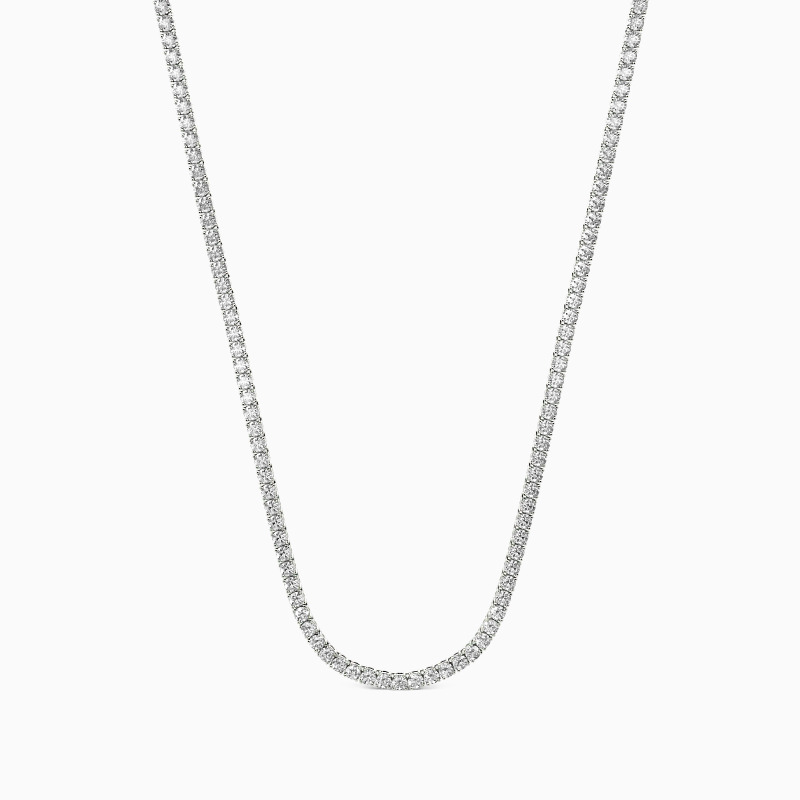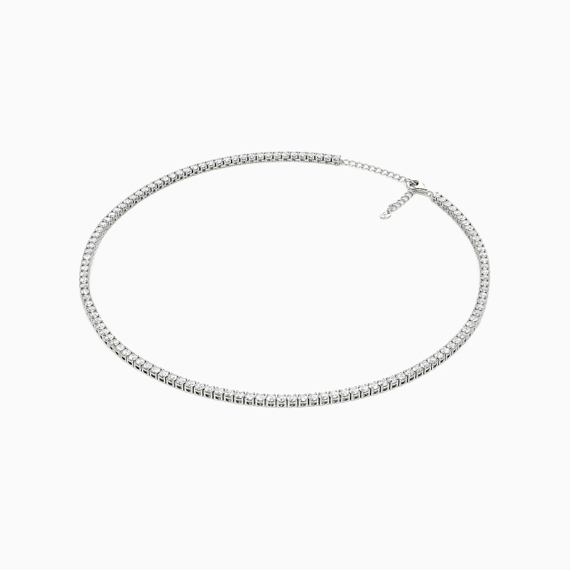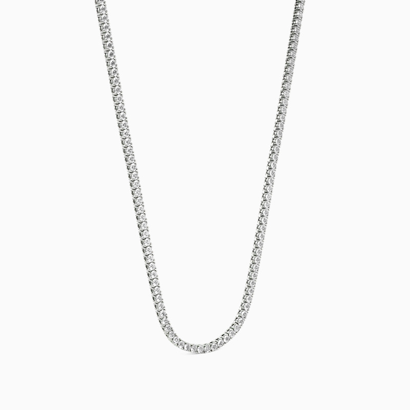 Enhance your neckline with the radiant allure of this tennis necklace. Featuring a stunning array of round-cut gemstones, this necklace exudes timeless charm. Each gemstone is meticulously set to create a seamless line of brilliance that gracefully adorns your collarbone. Whether worn alone or layered with other pieces, this tennis necklace is a versatile accessory that adds a touch of sophistication to any ensemble.