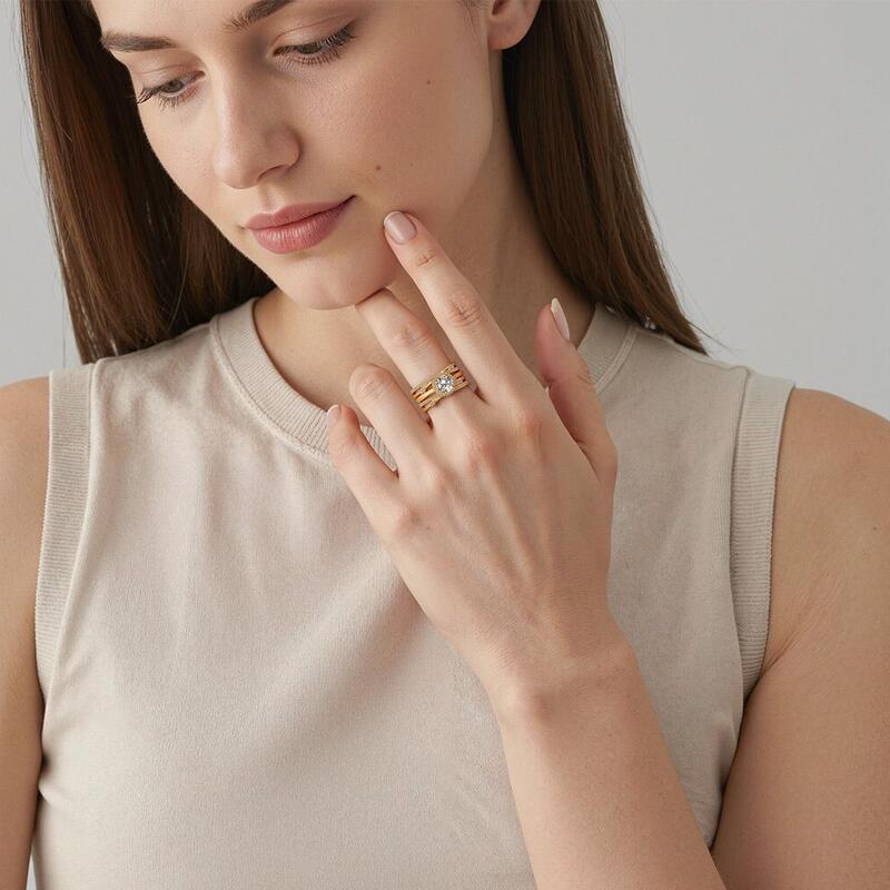 Elevate your bridal ensemble with this exquisite bridal set. This captivating set features a round-cut center stone that dazzles with its brilliance. A delicate halo of shimmering gems elegantly frames the centerpiece, adding a touch of timeless beauty. What sets this set apart is the crossed enhancer adorned with exquisite gems, allowing you to customize your look effortlessly. Embrace the versatility and elegance of this set, making it the perfect choice for your dream wedding day.