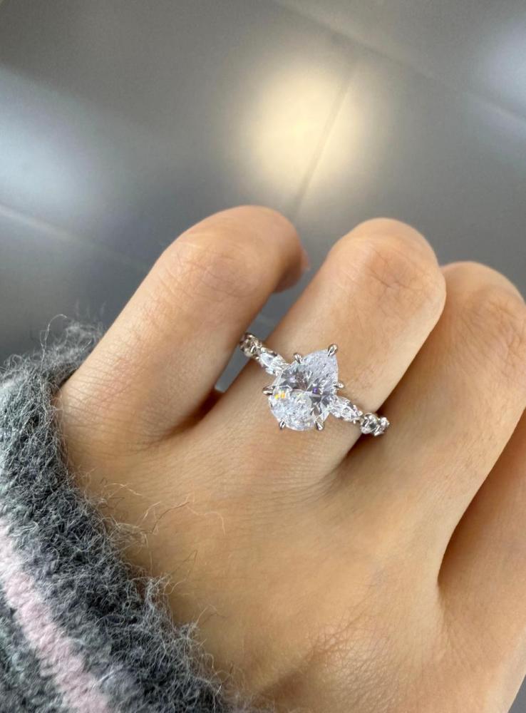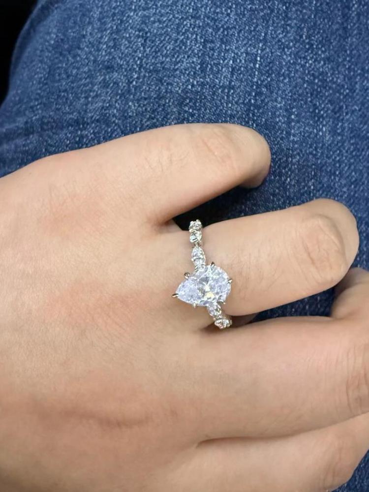 "Holy Promise" 2ct Pear Cut Side Stone Engagement Ring
