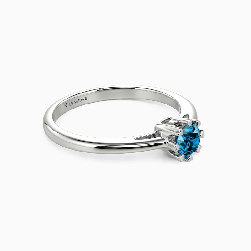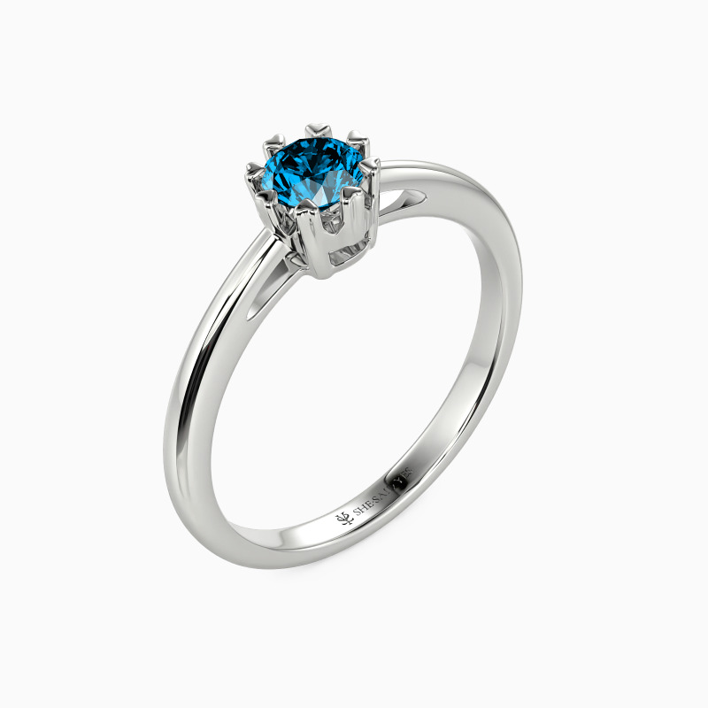 A timeless solitaire engagement ring, designed to captivate. The round-cut center stone rests gracefully in an elegant eight-prong setting, allowing light to dance across its facets. The tapered shank adds a delicate touch, ensuring a sleek and comfortable fit. A symbol of enduring love, this ring blends classic sophistication with modern refinement—perfect for a lifetime of cherished moments.