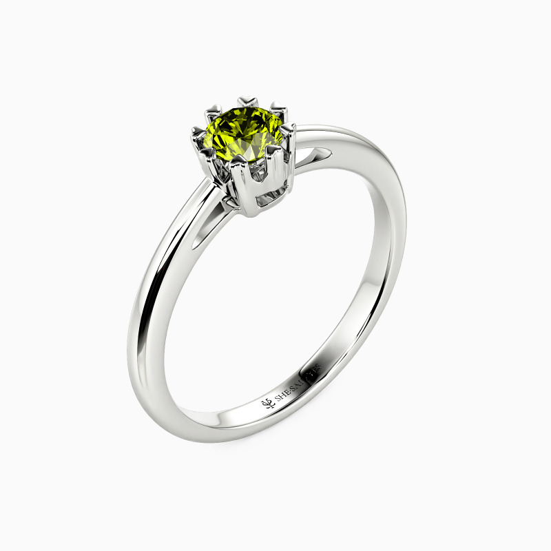A timeless solitaire engagement ring, designed to captivate. The round-cut center stone rests gracefully in an elegant eight-prong setting, allowing light to dance across its facets. The tapered shank adds a delicate touch, ensuring a sleek and comfortable fit. A symbol of enduring love, this ring blends classic sophistication with modern refinement—perfect for a lifetime of cherished moments.