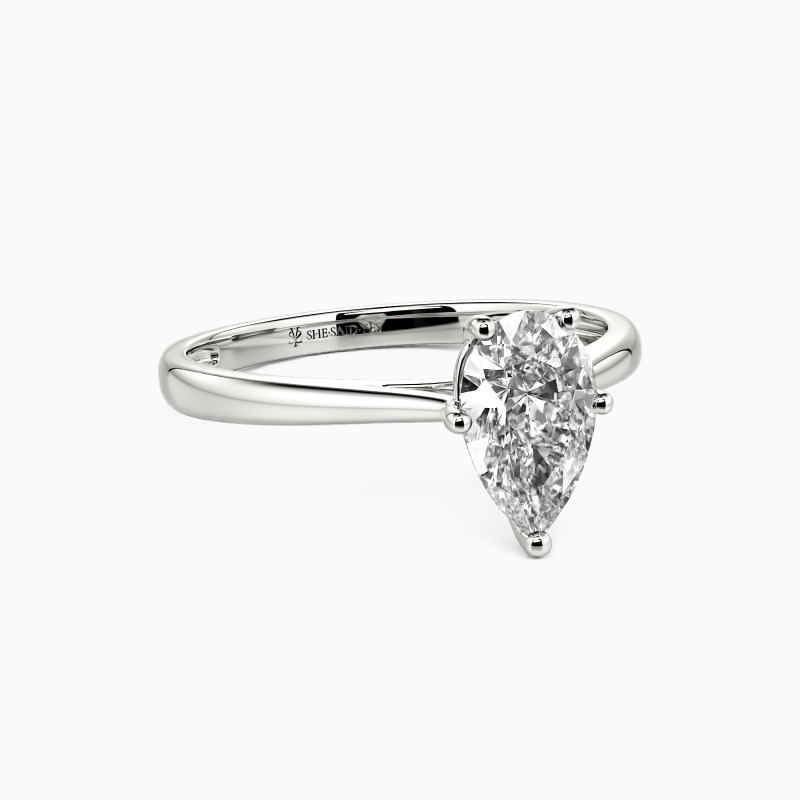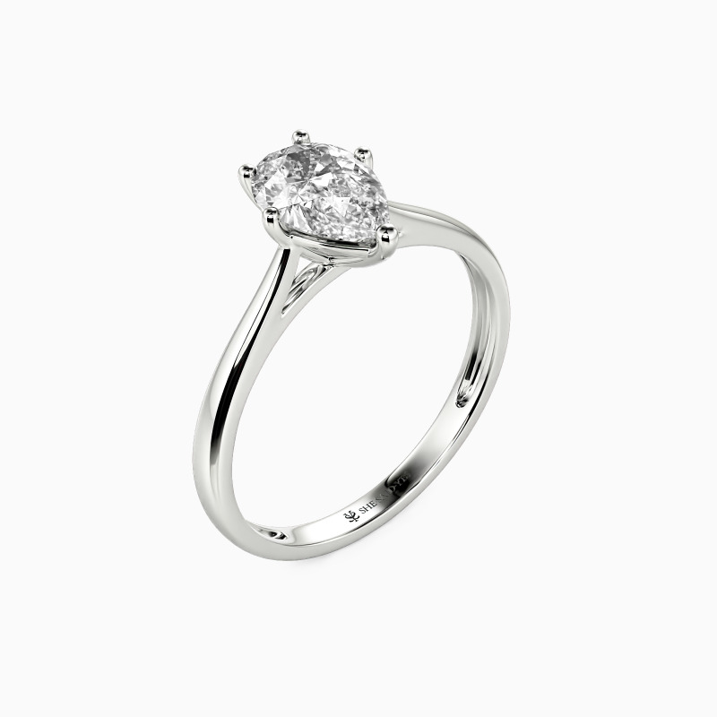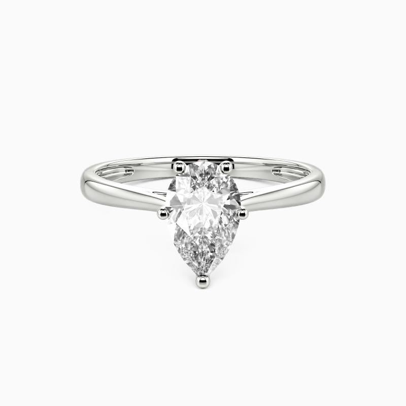 The setting gives a pear-cut stone a classic look and allows more light to contact the stone, enhancing its brilliance. Give this ring to your beloved one to promise to be with her forever.