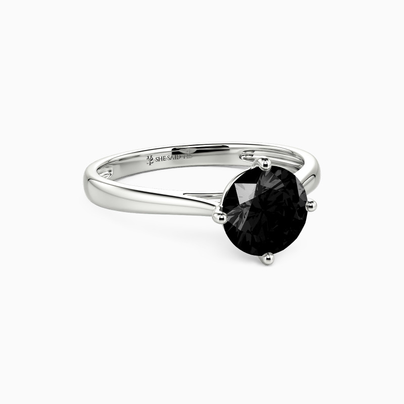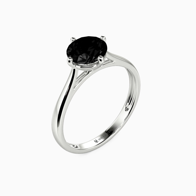 The four-prong setting gives a round-cut stone a classic look and allows more light to contact the stone, enhancing its brilliance. Give this ring to your beloved one to promise to be with her forever.