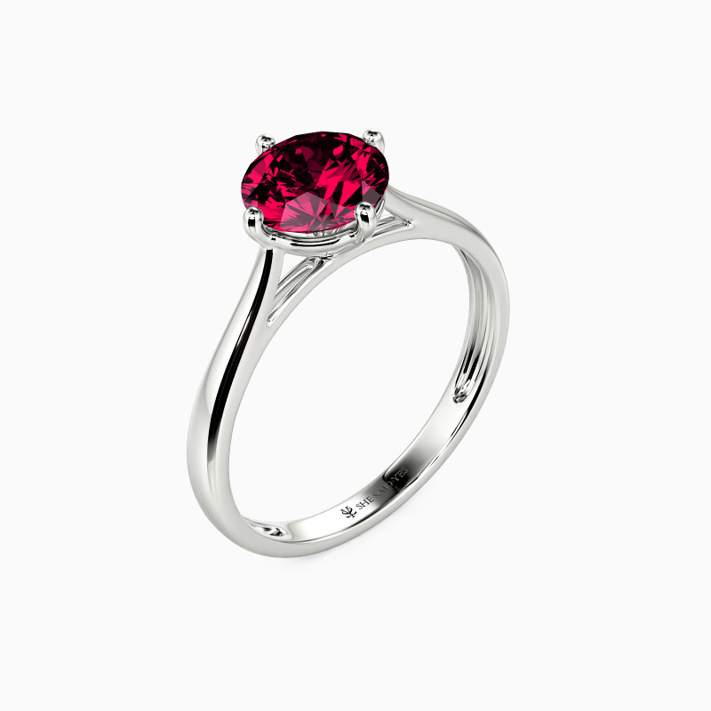 The four-prong setting gives a round-cut stone a classic look and allows more light to contact the stone, enhancing its brilliance. Give this ring to your beloved one to promise to be with her forever.