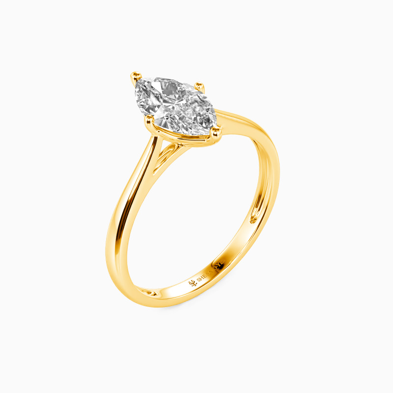 The four-prong setting gives a marquise-cut stone a classic look and allows more light to contact the stone, enhancing its brilliance. Give this ring to your beloved one to promise to be with her forever.
