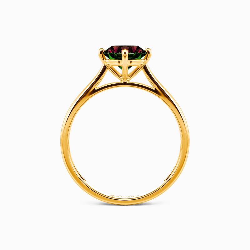 The four-prong setting gives a round-cut stone a classic look and allows more light to contact the stone, enhancing its brilliance. Give this ring to your beloved one to promise to be with her forever.