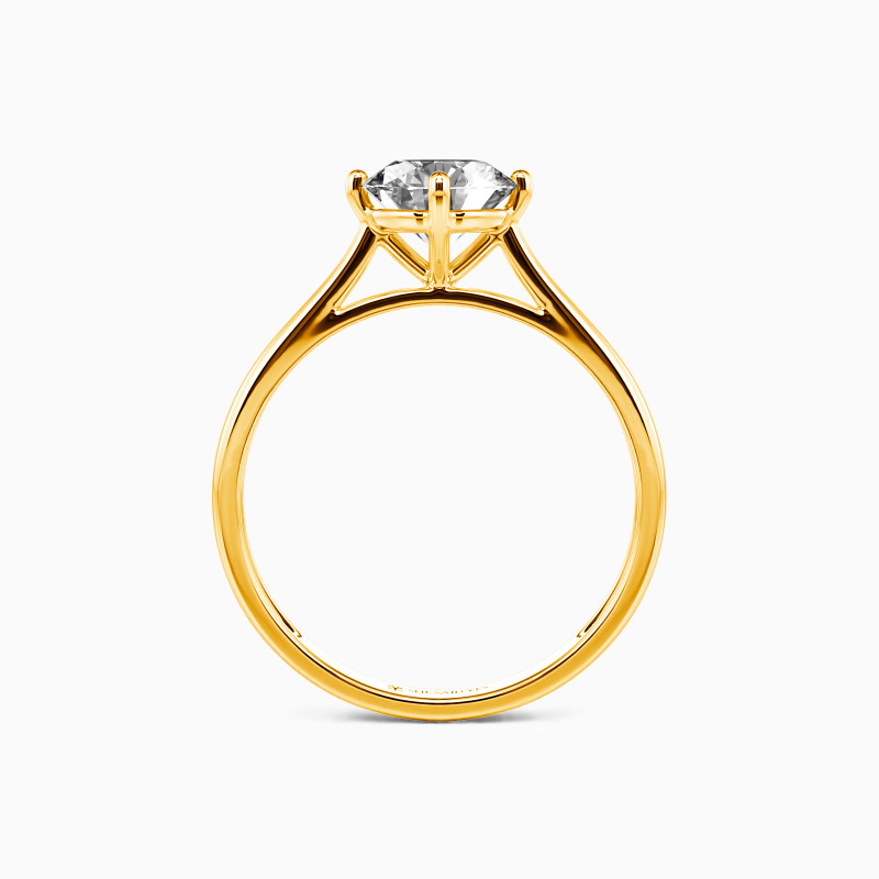 The four-prong setting gives a round-cut stone a classic look and allows more light to contact the stone, enhancing its brilliance. Give this ring to your beloved one to promise to be with her forever.