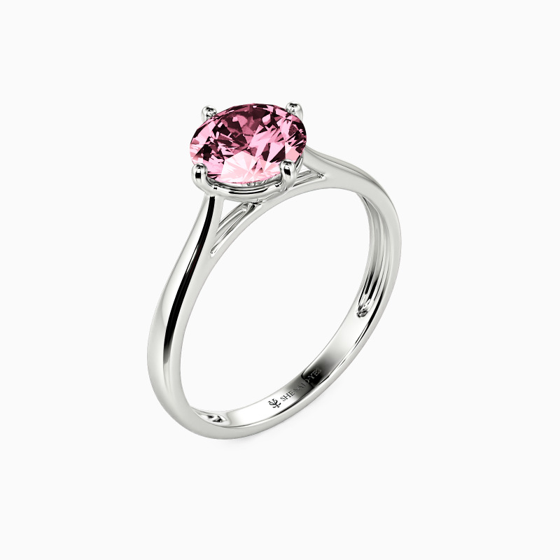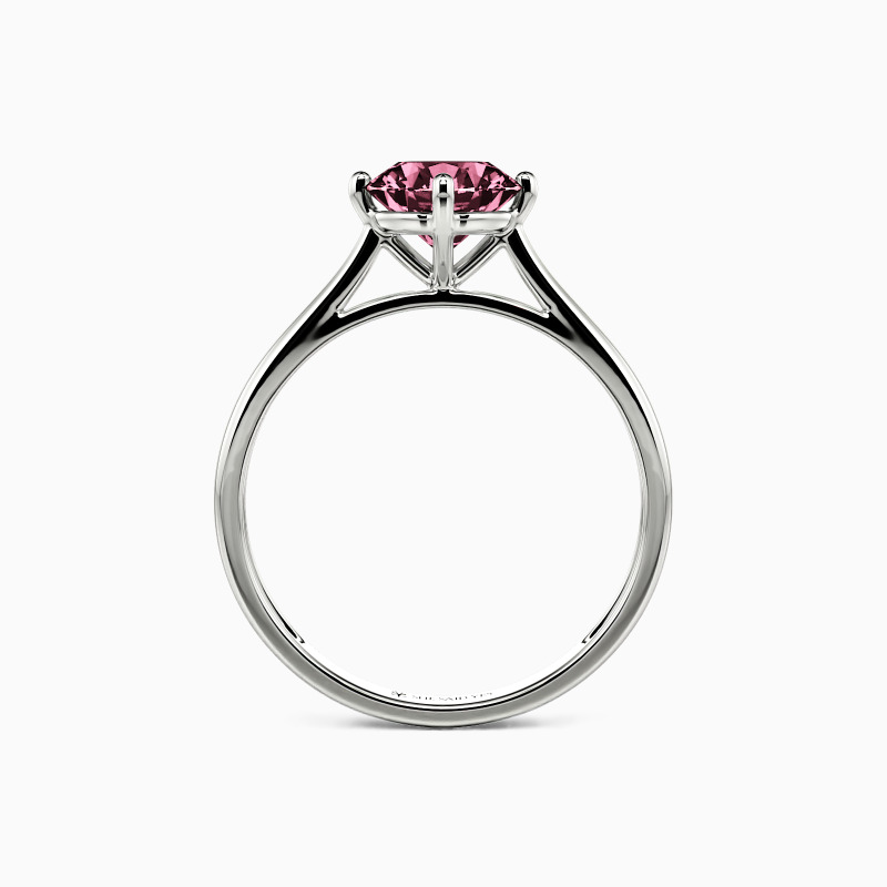 The four-prong setting gives a round-cut stone a classic look and allows more light to contact the stone, enhancing its brilliance. Give this ring to your beloved one to promise to be with her forever.