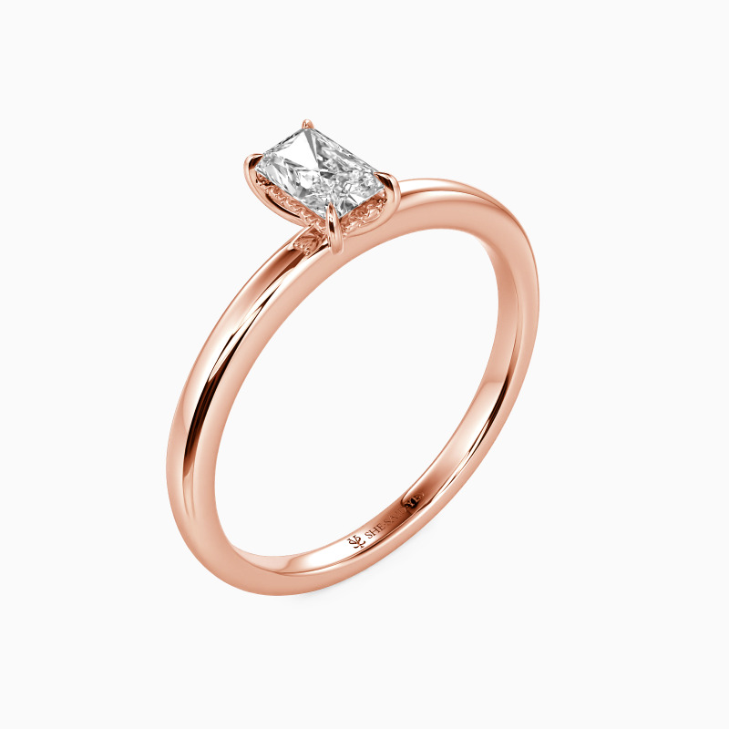 This radiant-cut solitaire engagement ring exudes timeless elegance with its dazzling center stone. Delicate bead detailing on the basket adds a touch of intricate craftsmanship, while the high-polished shank enhances its sleek, modern allure. A perfect harmony of brilliance and sophistication, this ring captures the essence of enduring love.