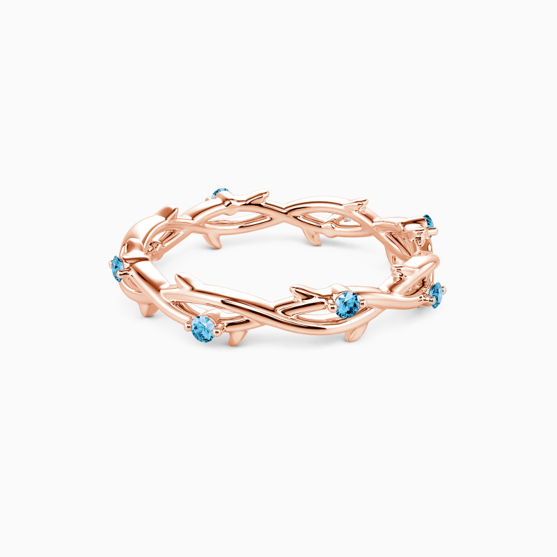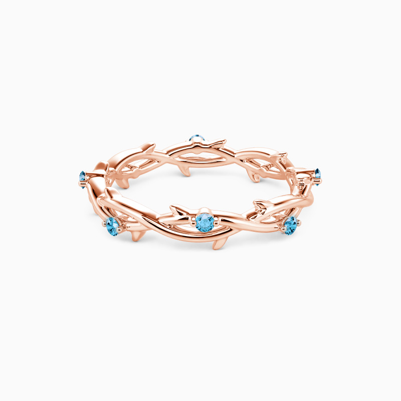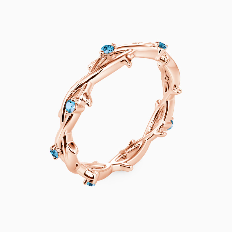 Inspired by nature, the wedding band features two intertwining vines beautifully entwined together. In addition, eight round gemstones are embellished on it, adding a touch of extra brilliance. Stacking with your engagement ring or wearing it solo is an ideal choice. The message it conveys is equally beautiful - just like the intertwined vines, the ring promises that the couple will never be alone and will be there for each other throughout their life journey.