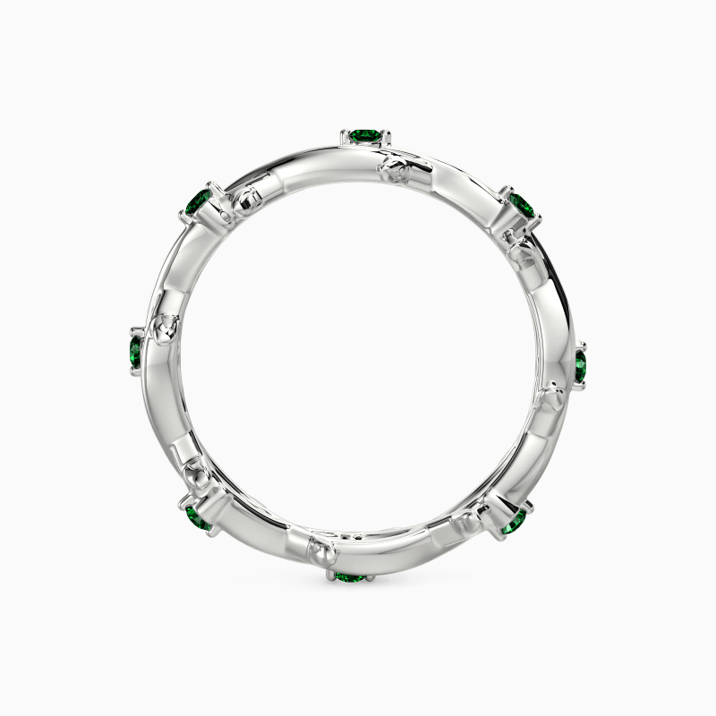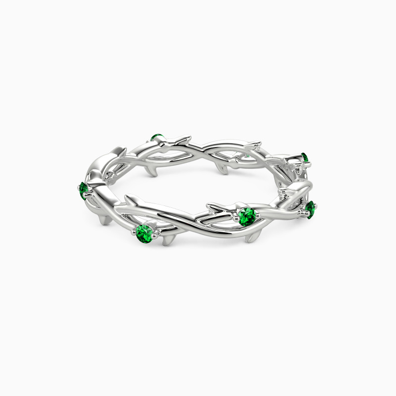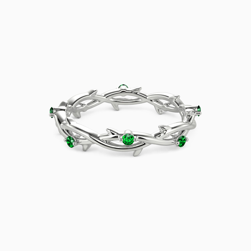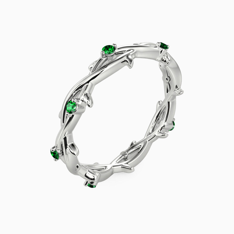 Inspired by nature, the wedding band features two intertwining vines beautifully entwined together. In addition, eight round gemstones are embellished on it, adding a touch of extra brilliance. Stacking with your engagement ring or wearing it solo is an ideal choice. The message it conveys is equally beautiful - just like the intertwined vines, the ring promises that the couple will never be alone and will be there for each other throughout their life journey.