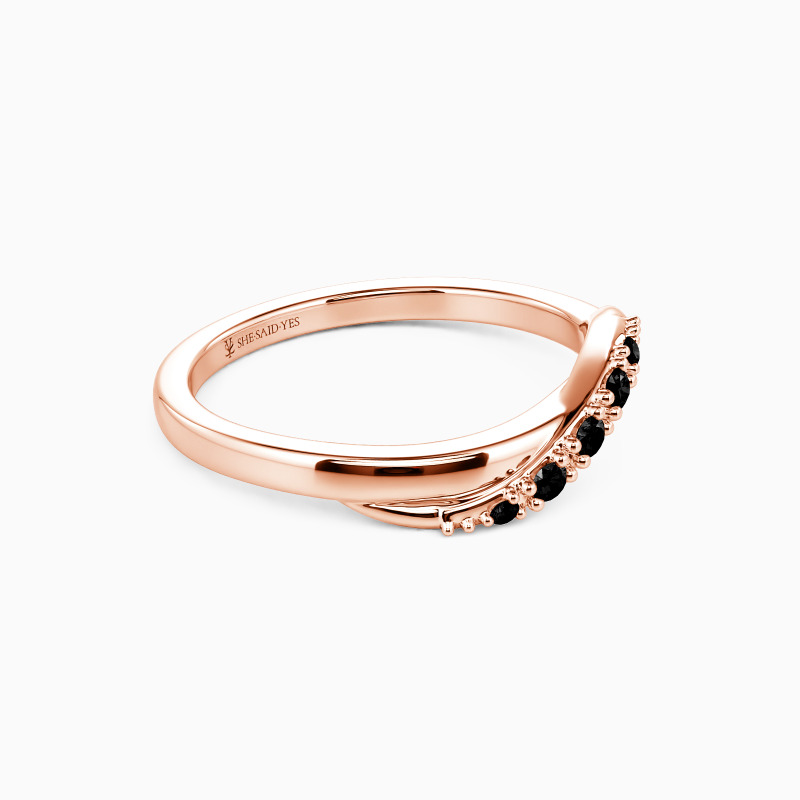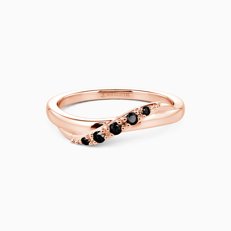 Delicate and radiant, this wedding band boasts a flawless high-polish design that enhances its brilliance. At its heart, a sparkling ribbon of gemstones winds gracefully, their facets capturing light with every turn. The seamless blend of polished metal and shimmering stones creates an effect that's both refined and eye-catching—perfect for a touch of understated glamour.